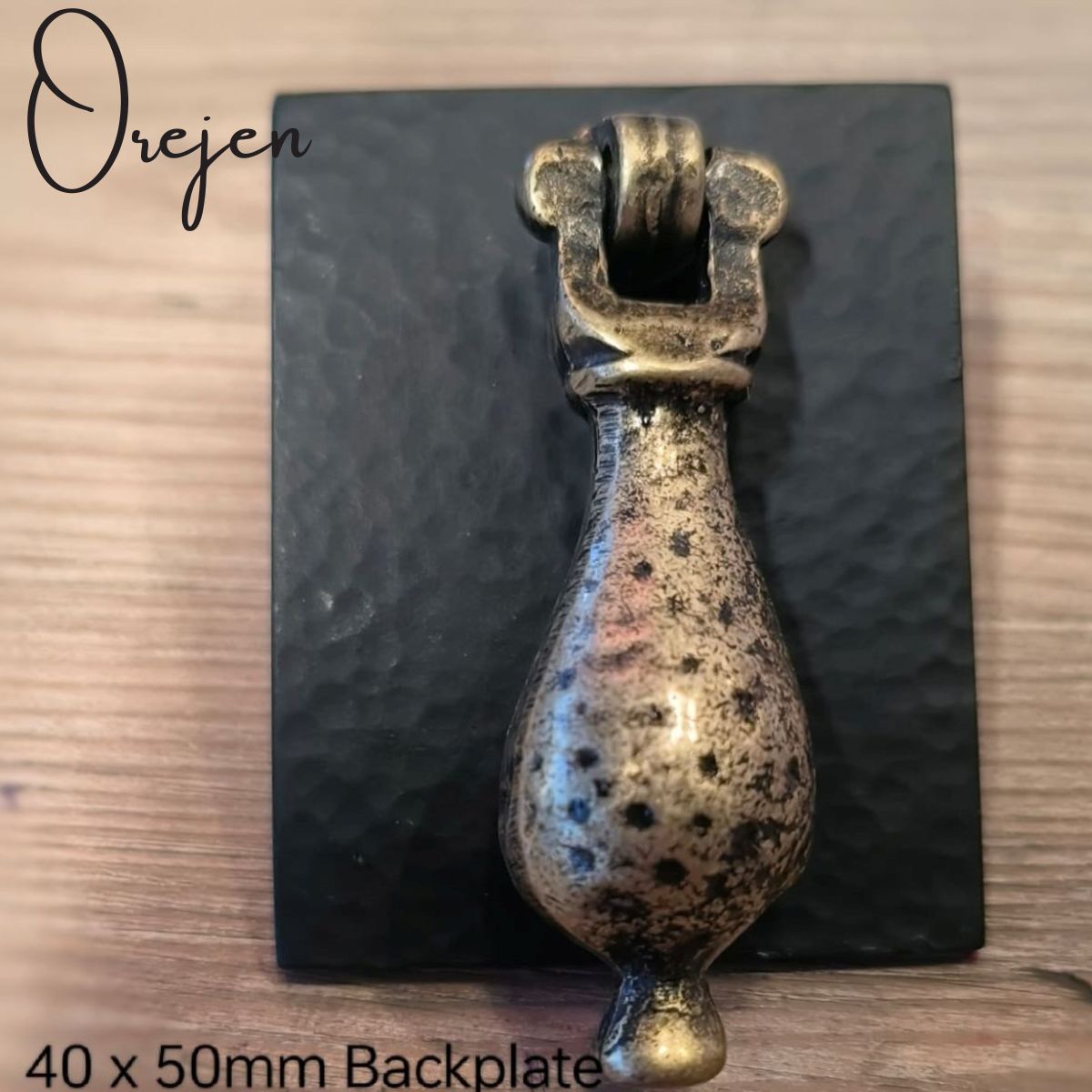 40 x 50mm gorgeous backplate which looks lovely with either a drop handle - totally different from every other handle available - or one of our knobs.