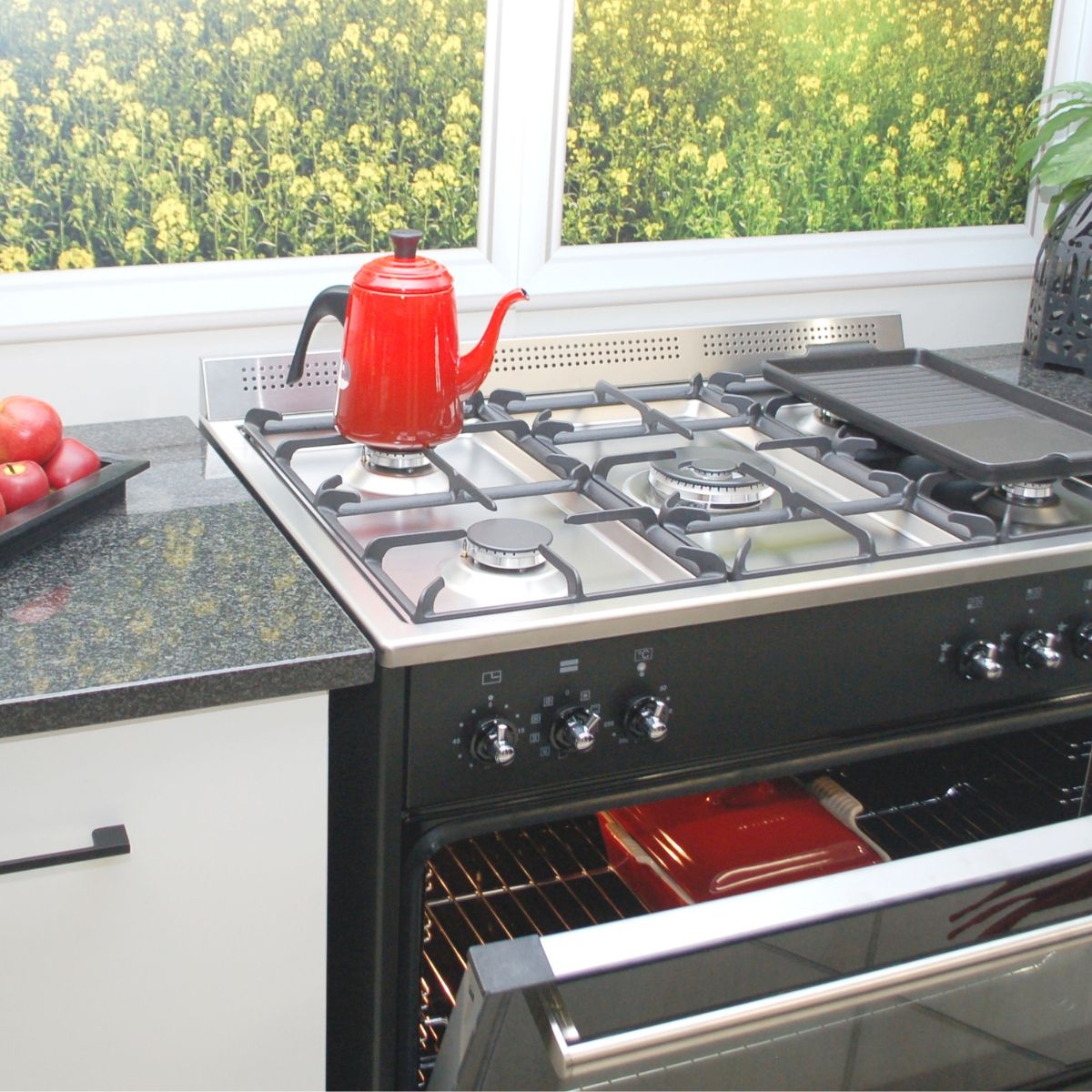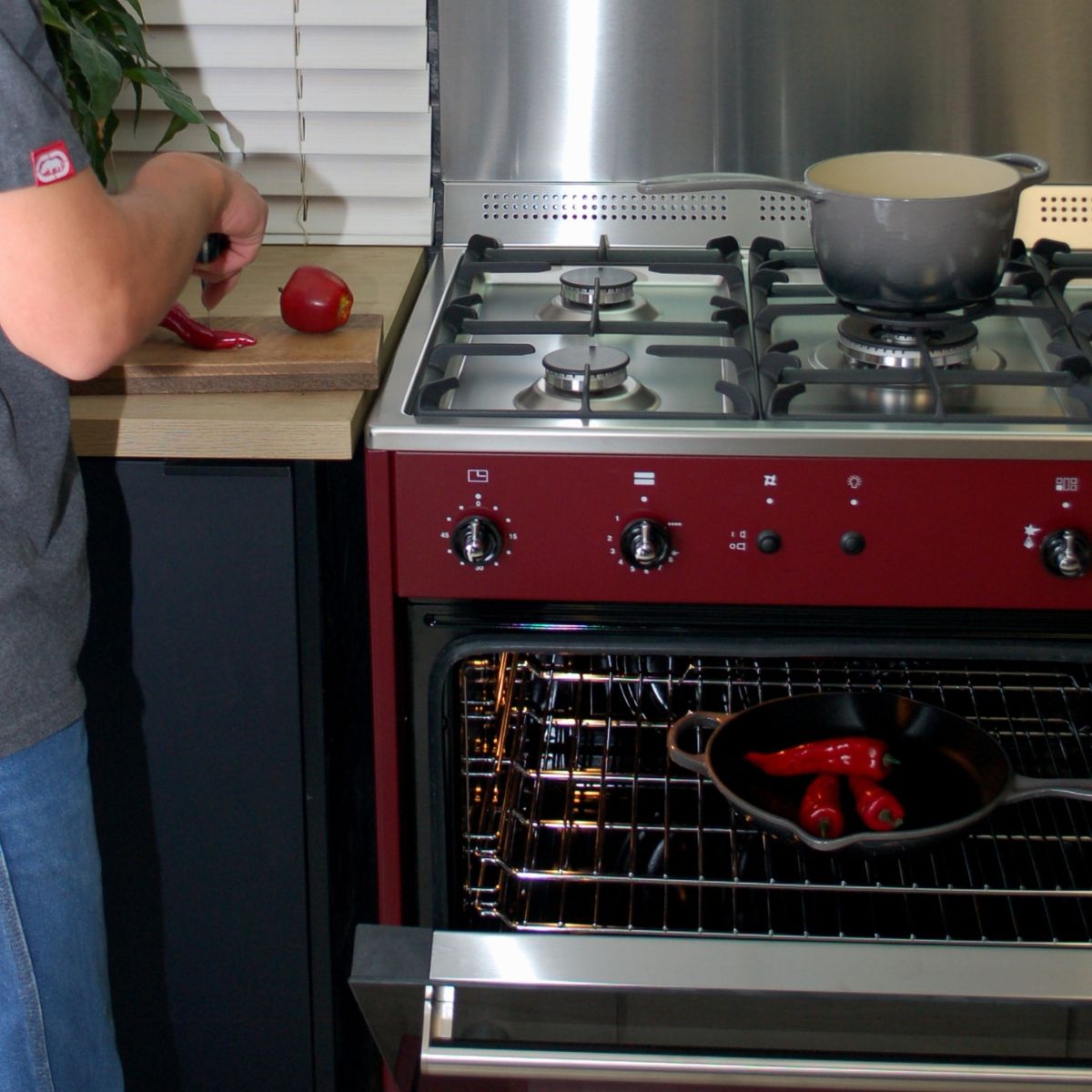 This Versatile Gas /Electric oven available in Cream, Stainless Steel, Ruby Red and the Sexy Black.